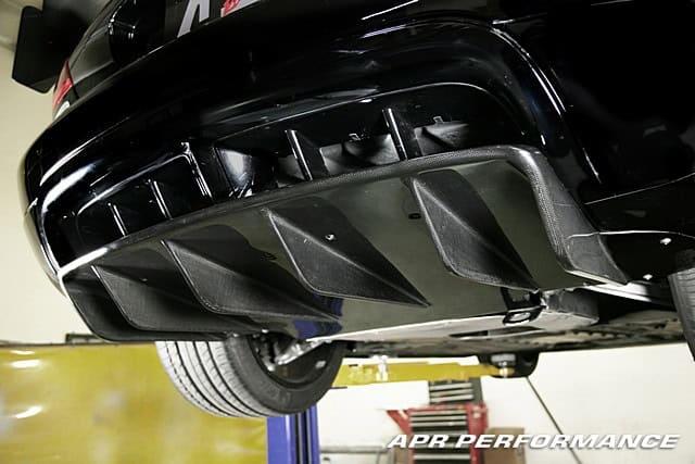 To help channel the high speed air flow coming from underneath the car, diffusers redirects the high speed air flow to transition smoothly transition into the low pressure vacuum in the rear. This encourages a smoother flowing air flow underneath the car and allows better performance from other aerodynamic components such as aerodynamic wings.