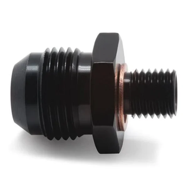 BLOX Racing offers metric to -AN fuel adapter fittings for its 440-LPH external fuel pumps. Each is machined precisely to ensure proper threading and sealing. A crush washer is included with each fitting adapter.Fittings are available for the inlet and outlet ports of the fuel pump in these -AN sizes: -6AN -8AN -10ANNote: 440-LPH fuel pump (BXFU-04440) sold separately. Crush washers (2-pk) available as replacement parts. Inlet port: M18x1.5 Outlet port: M12x1.5