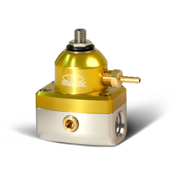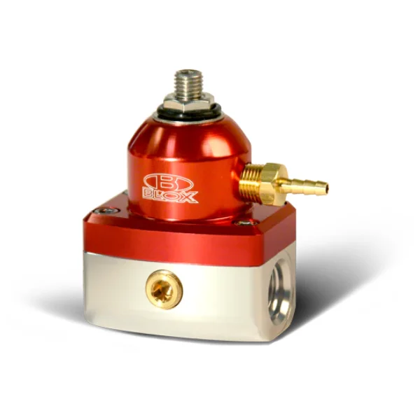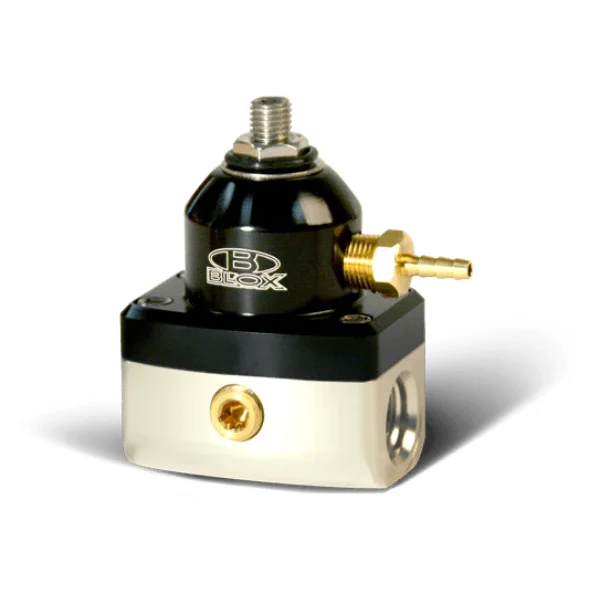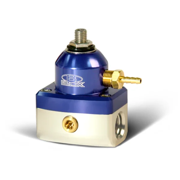 The BLOX Racing Competition 2-Port adjustable FPRs are designed to offer high performance and reliability. Each FPR unit comes pre-assembled from BLOX and is guaranteed to offer consistency each time the engine is turned on.These billet aluminum units feature -6AN inlet and return ports in-line which offers more flexibility during installation, 1/8″ NPT ports, are compatible with gasoline, diesel, methanol and ethanol.BLOX Competition Adj. FPRs are designed to work with aftermarket fuel rails and are available in an assortment of color combinations.Regulator Specs Inlet size: -6AN Max. flow: 2.5 GPM @ 25 PSI Adj. range: 25-90 PSIProduct Spec Sheet