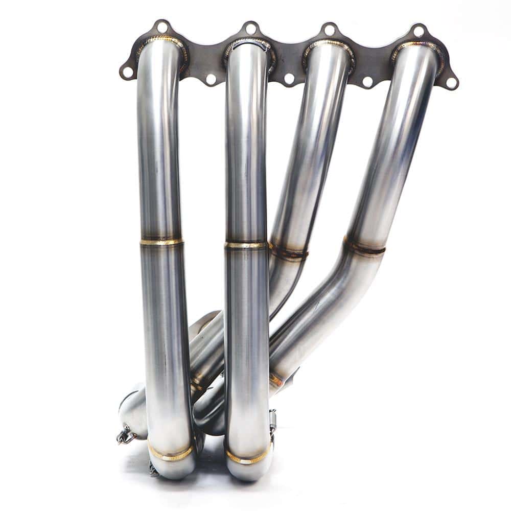 BLOX Racing Hi-Flo [commonly referred to as ‘small tube’] exhaust headers are specifically intended for Honda B-series engines between 1.6L-1.9L in displacement. Hi-Flo exhaust headers are 2-piece and feature a 4-2-1 (Tri-Y) design using innovative stepped exhaust tubing.16-gauge T304 is used to construct these high performance, stainless steel headers, including T304 cylinder head and collector flanges. All headers are expertly TIG-welded to ensure durability and reliability each time you start up your engine. Spent exhaust gases exit through true 2.5″ exhaust collectors.BLOX Racing Hi-Flo headers are designed to widen midrange power and take advantage of peak horsepower.FOR OFF ROAD USE ONLYHi-Flow Header Specs T304 stainless steel Mandrel-bent, TIG-welded 10mm thick cylinder head flange 8mm thick collector flange 2-piece, includes header springs 4-2-1 Tri-Y design Step-up Piping sizes (OD): 42mm – 45mm -51mm 63.5mm (2.5″) Collector outlet