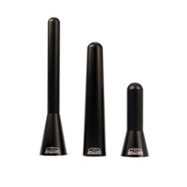 The BLOX Racing Mini Antenna is the stylish replacement for the flimsy, unattractive factory antenna. Mini antennas’ small, minimalistic design makes a big visual statement adding a sense of style and a more aerodynamic look. Solid fasteners and a tapered base makes it sturdy and appear like an extension of the car design, not an add-on. It is precision-crafted from CNC-machined billet aluminum and comes if silver and anodized black finishes.