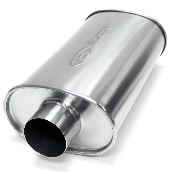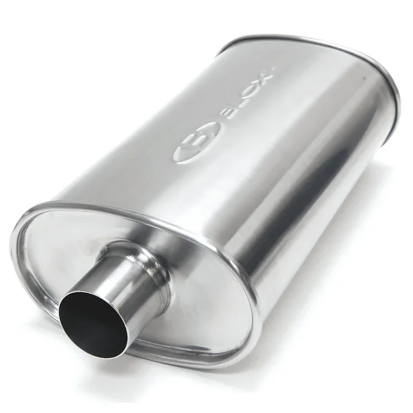 BLOX Racing is pleased to introduce its new line of SL Sport Mufflers. Each oval shaped, universal sport muffler is manufactured out of stainless steel. Each SL Sport Muffler featuresT304 piping and T409 perforated cores. The T430 woven mesh is designed to withstand temperatures up to 800-degrees F.Each muffler features a straight-through design and helps reduce exhaust back pressure. Although these mufflers are universal, they also feature the convenience of being reversible for custom fabrication projects and installations. All BLOX Racing SL Sport Mufflers feature handsome, embossed logos and emit deep/low exhaust notes.SL Sport Mufflers are available in Brushed Silver and Matte Black and 2.25″, 2.5″ and 3″ piping diameters.SL Sport Muffler Specs Diameter = 22″ Overall Length = 15 Width = 8.75″ Inlet Sizes = 2.25″ / 2.5″ / 3.0″ Dry weight = 9.9lbs (2.25″), 10lbs (2.5″/3.0″) Material = T304, TIG-welded T409 perforated cores