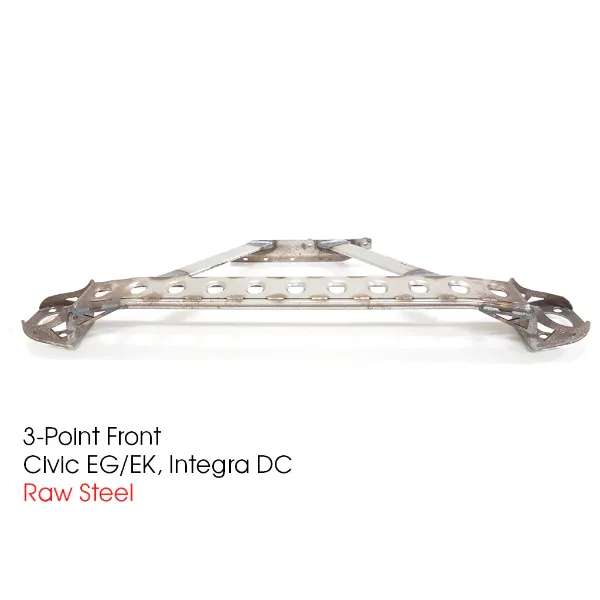 Our strut bars are designed with two horizontal steel bars tying each shock tower together. Bars are then welded together with no pivoting parts for maximum chassis rigidity. This will stop your car from flexing during track events as well as during casual spirited driving.