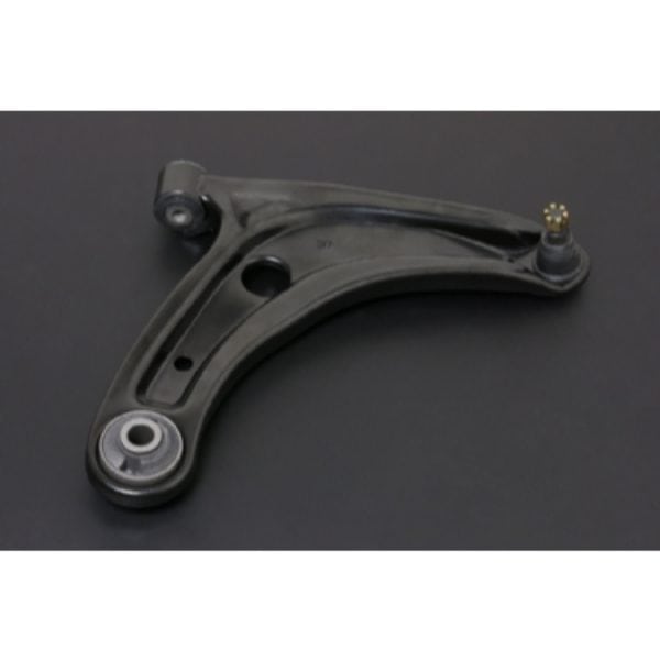 Control arm made with hardened steel and compound with hard rubber bushing or pillow ball bushing. A good control arm can regulate the movement of wheels quickly each time you turn or corner.