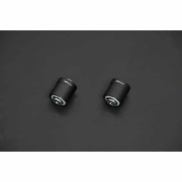 HARDRACE Front lower shock bushing can effectively eliminates issues like sloppy steering, unwanted suspension deflections. Inner bushing is made accurately with both high molecule plastic tube and oilless bearings. It dramatically improves the function of other suspension modifications by providing a solidly precise axis point.