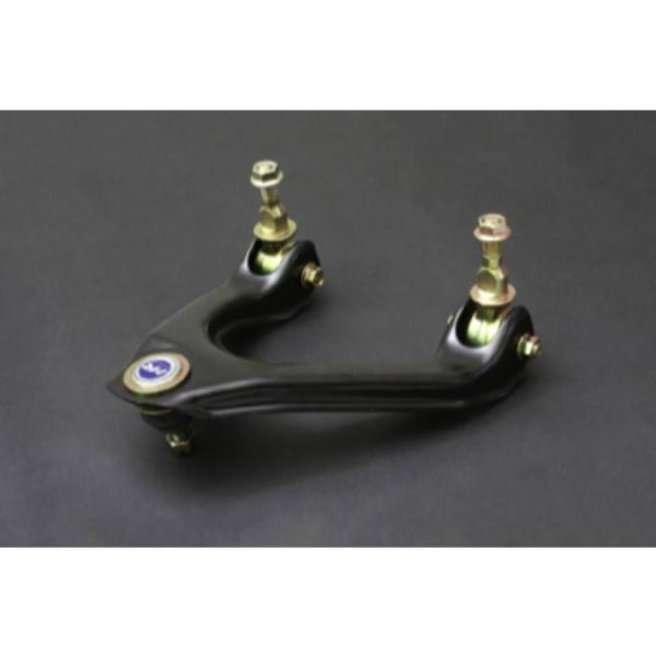 Control arm made with hardened steel and compound with hard rubber bushing or pillow ball bushing. A good control arm can regulate the movement of wheels quickly each time you turn or corner.