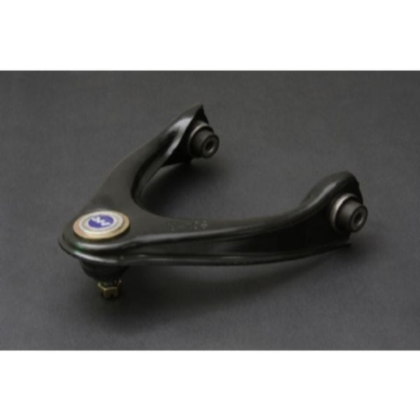 Control arm made with hardened steel and compound with hard rubber bushing or pillow ball bushing. A good control arm can regulate the movement of wheels quickly each time you turn or corner.