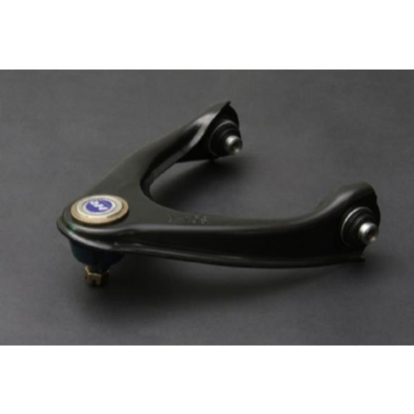 Control arm made with hardened steel and compound with hard rubber bushing or pillow ball bushing. A good control arm can regulate the movement of wheels quickly each time you turn or corner.