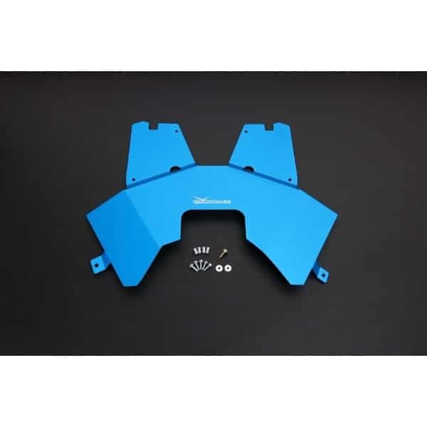 HARDRACE middel lower splash guard protects the lower portion of the engine from any debris, dust, or corrosive fluids that can be encountered on the road. It is made of a durable and high-strength aluminum alloy.