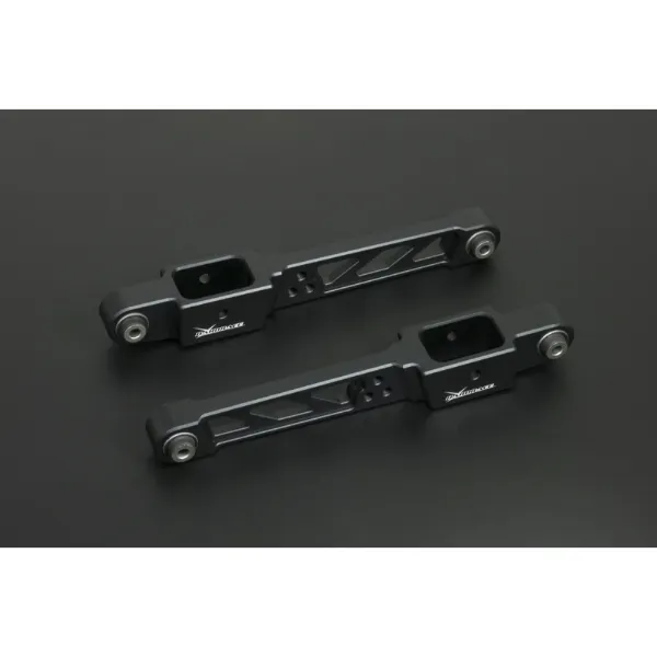 Hardrace redesigned the control arms with improved construction and materials. Made of CNC machined aluminum alloy instead of stamped steel, these arms offer superior strength, durability and yet remain lightweight. The equipped high quality harden rubber bushings also provide greater handling response over the factory components.