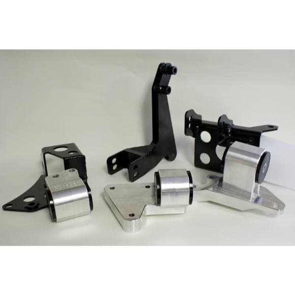 This is the second of two performance mount kits for K-series engine swaps into the 96-00 Honda Civic. This mount kit designed to work with an EG/DC rear cross member, lower control arms and steering rack. Using this mount kit the engine is moved back resulting in better axle angle, protection from contact with the ground and better weight distribution. This kit has dual height mounting points so the engine can be mounted for better power steering pump clearance to the hood.