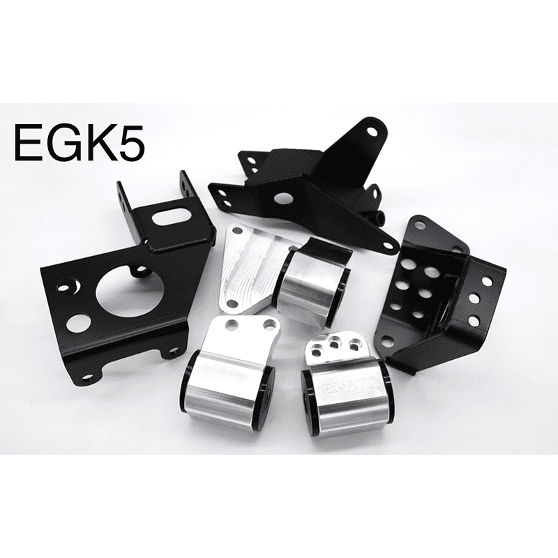 Hasport’s 92-95 Civic / 94-01 Integra EGK5 K-swap mount kit features Hasport’s patent pending dual height engine mounts while adapting K20A/Z and K24A/Z engines with manual transmissions from 12-15 Civic Si, 09-14 TSX, 08-12 Accord M/T, 03-04 CRV M/T AWD, and 03-11 Element M/T AWD. Everyone is talking about building an AWD Civic — Subarus and Evos beware! Get yourself into the action with Hasport’s EGK5 mounts today!