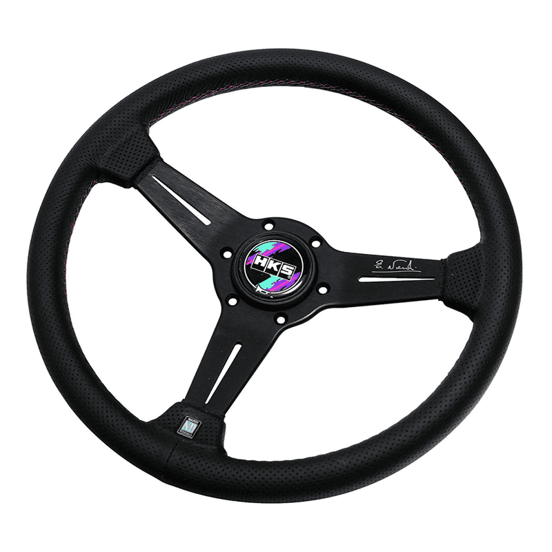A steering wheel that supports HKS in the motorsports scene, a collaboration model with NARDI was launched. CLASSIC SPORTS TYPE A’s special specification, 340mm, is employed to realize discerning operability. The dimpled black punching leather is a sports-use model with excellent grip It is a masterpiece made by hand by authentic Italian craftsmen.