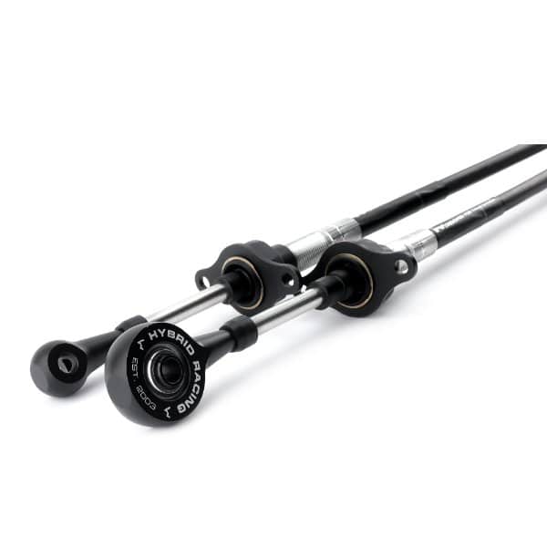 Hybrid Racing shifter cables are a performance upgrade replacement for stock OEM cables. The solid rod ends, permanently lubricated core, spherical bearings, & aluminum end links give the Hybrid Racing cables a firmer, tighter feel over OEM cables resulting in fewer missed shifts and a more connected feel to the chassis. Heat resistant up to 225*F with a max bend radius of 5″ (for optimum life)