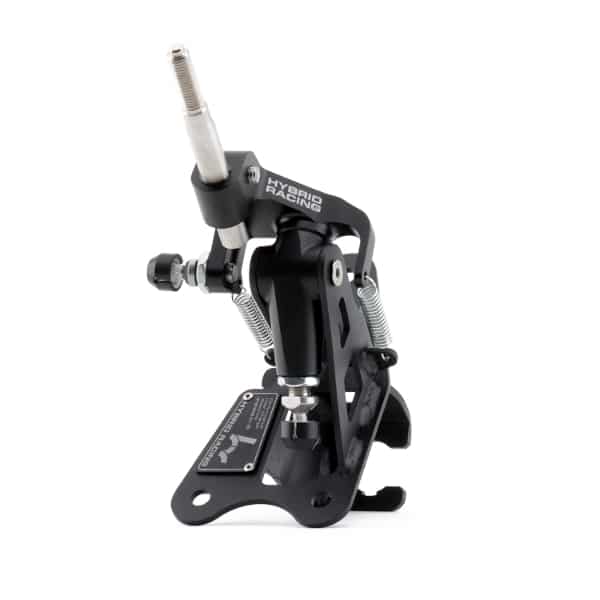 The shifter’s frame is constructed from TIG welded, powder coated, 1000 Series steel. The Dust-Gold anodized upper and lower rocker assemblies are now made of single pieces of Aerospace aluminum and feature custom sealed ball bearings to reduce friction. The new V2 shifter is 60% smoother than the original version requiring much less physical effort to row through gears all while being significantly lighter. Shift throw adjustment is achieved using two threaded cable attachment pins, meaning fine tweaks can be made to shift throw, allowing you to dial in the exact throw that suits your shifting style. Each attachment pin features a wear-resistant Delrin pivot cap for sturdy, quiet operation. New dual, zinc-plated extension springs replace the OEM style torsion centering spring for better-centering action and more direct feel.