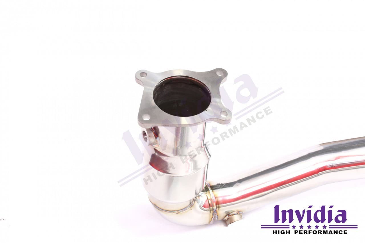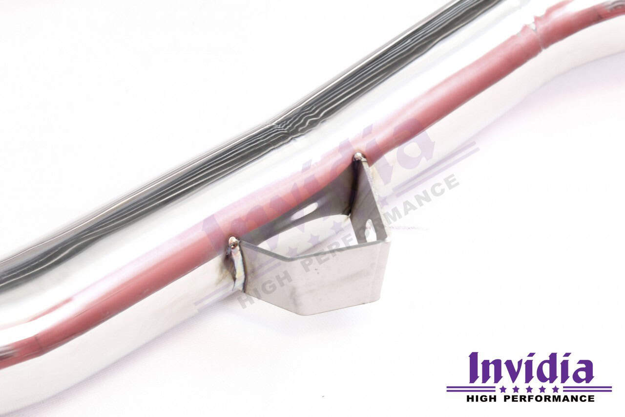 The most restrictive component of the factory exhaust system is the down-pipe which begins right after the turbocharger. Invidia Exhausts use a larger pipe diameter and smooth bends allows the turbocharger to exhale exhaust gases with fewer restrictions and turbulence. Because of these reasons, Invidia down-pipes make for the most popular exhaust upgrade that adds a substantial bump in both horsepower and torque with a great reduction in turbo lag.