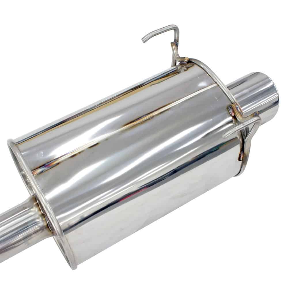 Invidia’s G200 offers a quieter exhaust note during light throttle conditions but once open throttle is applied really wakes up and gives a nice aggressive sound. This makes it a great option for those who daily drive their vehicles and don’t want to attract too much attention during their everyday commute. The G200 features an oversized barrel muffler with unique internal baffling which produces a deep exhaust tone througout the rev range.