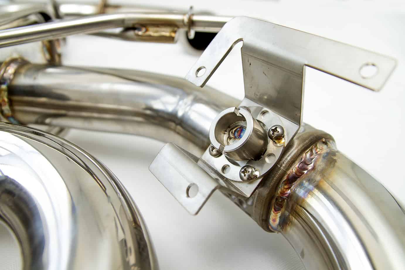 First, a 3D scan is take of the underside of the car to ensure fitment is 100% correct.  Next, grade 304 Stainless Steel  (with the exception of their titanium systems of course) is selected for all piping, mufflers and flanges. This particular grade is chosen for its strength, durability (ability to withstand the elements),  and its ability to be formed and welded with relative consistency and ease. Cast flanges are then used which ensures 100% correct fitment every time, no leaks or additional stress points, and long lasting strength.    , an