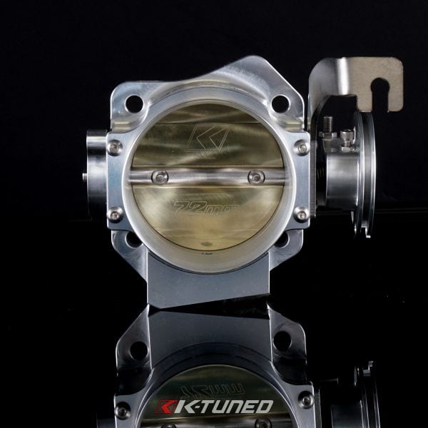 The OEM K-Series MAP sensor and IACV are both a direct bolt on, with the ports located on the bottom of the TB, where they are out of view for a cleaner look. Like our other throttle body you are able to change the adapter easily to change the TPS sensor from K-TPS to B-TPS. Please note that the 5V signal range of both TPS sensors is identical so this option offers even more choice on the final intake setup. The throttle cable connection is made using a fully adjustable throttle rotor with 10 settings. All K-Tuned Throttle Bodies are constructed with 6061 billet aluminum with a brass throttle blade and a stainless steel, center-less ground, throttle shaft that is leak tested to 90psi. They are also 100% North American made as are all the raw materials.
