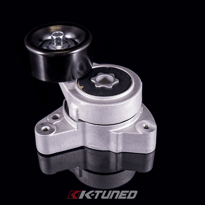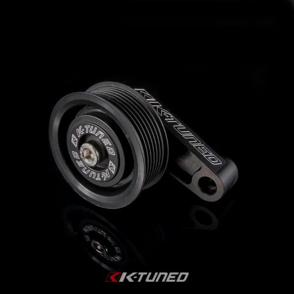The K-Tuned Adjustable EP3 Pulley kit is the newest addition to our ever growing parts line-up. This simple and very useful part has been in development for a little while now, and was designed to solve K-series accessory belt adjustment issues. Up until now, people that chose to use the oem Honda EP3 Idler pulley have encountered problems with over-tightened or loose accessory belts. This is because the original factory EP3 idler is fixed and not adjustable. The K-Tuned EP3 Pulley kit allows the user to correct the length of the accessory belt by manual adjustment, to keep tension in the perfect service window. This is especially useful as the belt stretches over time. K24 / K20 engine combos will appreciate the adjustability of this part even more because of the parts mixing that occurs on these setups. For some swaps, like a K24 engine swap into a 06-09 Civic, people have even started using the smaller K20 crank pulleys in an attempt to correct the accessory belt length.