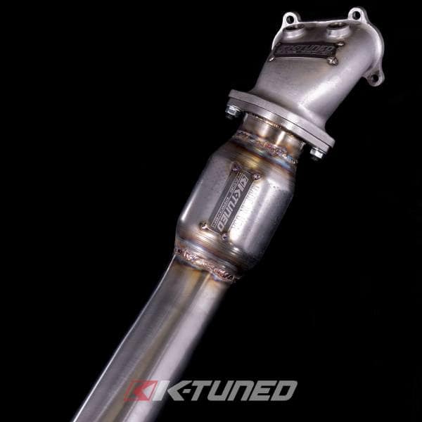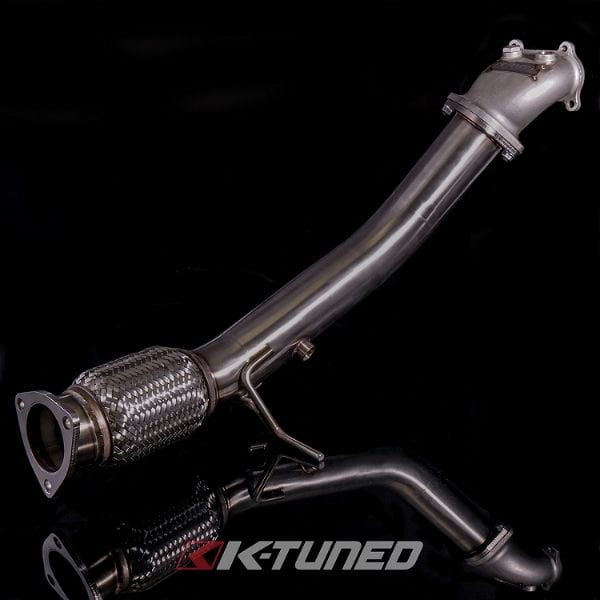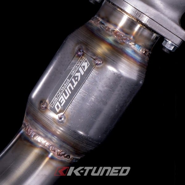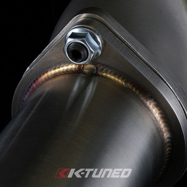 The K-Tuned 9th Gen Downpipe completely replaces the factory cat section with a free flowing 3″ downpipe. We started things off with a cast stainless steel housing, designed to offer a smooth transition from the head flange to the exiting 2-bolt exhaust flange. The T304 stainless 3″ diameter pipe section is beautifully tig welded and bolts up to the housing, before heading downward perfectly past the factory subframe and swaybar. Welded into the lower part of the downpipe is a high quality Vibrant Turbo Flex section with interlocking inner liner to absorb the normal engine movement. On the cast housing, we positioned 2 x O2 sensor bungs, one for the primary O2 and a second for an accessory O2 sensor, which we also include a plug for in case it is unused. We include all the hardware needed for installation, including: 1 x O2 plug, 2 x serrated M8 nuts, 1 x M8 bolt and 1 x M8 washer for the housing to head connection. Note that some of the original hardware will still be used to hold the housing in place. Be sure to check out our K-Tuned 9th Gen 3″ Exhaust System, it will mate up perfectly to our downpipe and gains will increase even more with our complete system.
