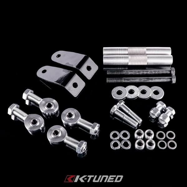 Another race inspired part from K-Tuned. Front Stabilizer Bars are designed to be used with any of our Traction Bars to add additional support to the front suspension. These are what hard-core racers with 88-91 Civic / CRX race cars have been asking for. The additional supports mount to the back hole of the front LCA and then link to the floor frame rail. The bracket in this kit is mounted using one existing subframe bolt hole,the other bolt location needs to be drilled through the floor frame rail and bolted up. Add this kit to any existing K-Tuned traction bar to make it a race setup.