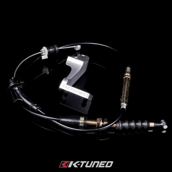 Tired of having a throttle cable long enough you could dry your laundry on it? K-Tuned has developed a custom throttle cable bracket and matching properly sized cable. No more long throttle cable all over the engine bay, this one is just long enough to reach the firewall with no wasted length and just enough slack. Cable is a custom sized OEM quality cable. Bracket is powder coated black.