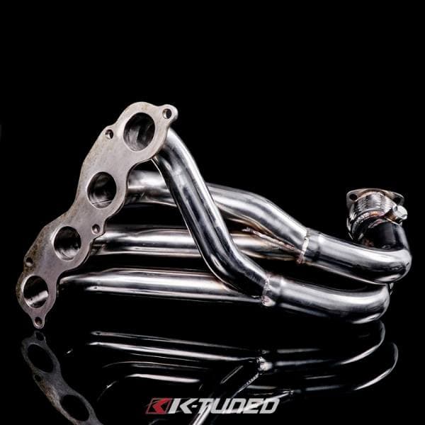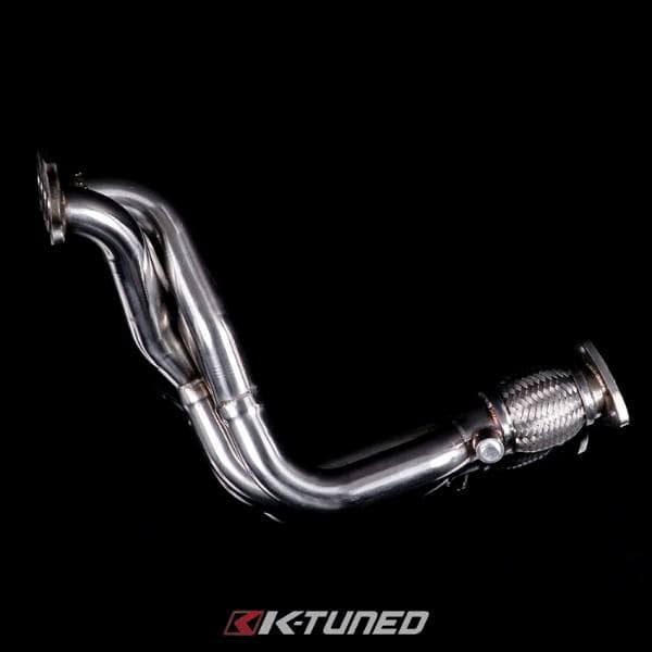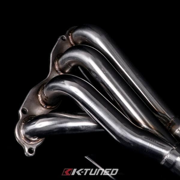 The popular K-Tuned 4-2-1 Swap Header for K-series engine swaps is back again with some improvements. This header is capable of making very good power on relatively stock or mild engine setups. The main focus while designing our K-Tuned Swap Header was to blend excellent fitment, high quality construction and keep the price reasonable. We have upsized the primary piping slightly and improved the quality of all transitions to improve exhaust flow. The primary to secondary transition now uses an expanded secondary pipe at the joint to eliminate any restriction. The secondary pipes have also been changed a little and now merge together better at the collector. The header is constructed with 100% stainless steel with 3/8′ thick flanges that are double welded and then ported for optimum flow. The piping is extra thick for added strength and to allow better weld penetration. These strength features add longevity and make a header that will be able to take the abuse of a firmly mounted K-swap engine. The strong interlocking flex-pipe can handle a lot of heat and has a 2.5′ ID (Inside diameter). It flows very well and absorbs engine movement. Like our other headers, they are designed to fit most K-swap chassis perfectly. The header does not interfere with shifter mounting kits and is well centered in the exhaust tunnel. The 3-bolt exit flange prevents leaks and allows for installation to the existing exhaust piping with minimal modification. Please note that all of our headers will require some exhaust welding for installation.