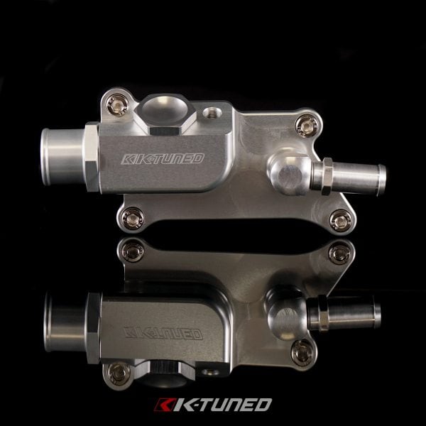 The K-Tuned Upper Coolant Housing will compliment our Swivel Neck Thermostat and our Water Pump Block off Plate. All of these parts allow plenty of options for custom and race engine cooling setups.