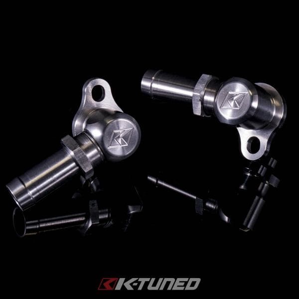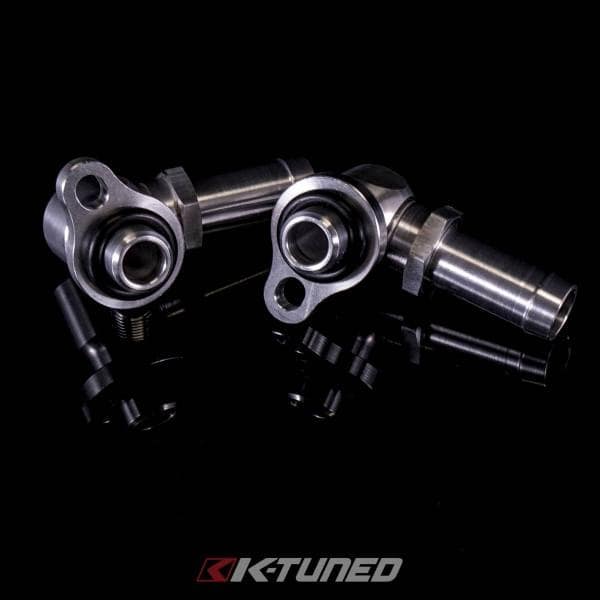 The oil cooler fittings are direct replacement for k-series cars with oil coolers mounted on the back of the head, below the vtec solenoid. The kits come with two fittings, one for on the water pump and the other on the block. Pair these with the K-Tuned silicone hoses for best fit and look. The fittings can be used as a simple way to clean up the engine bay or provide an easy access to coolant for turbo cars.