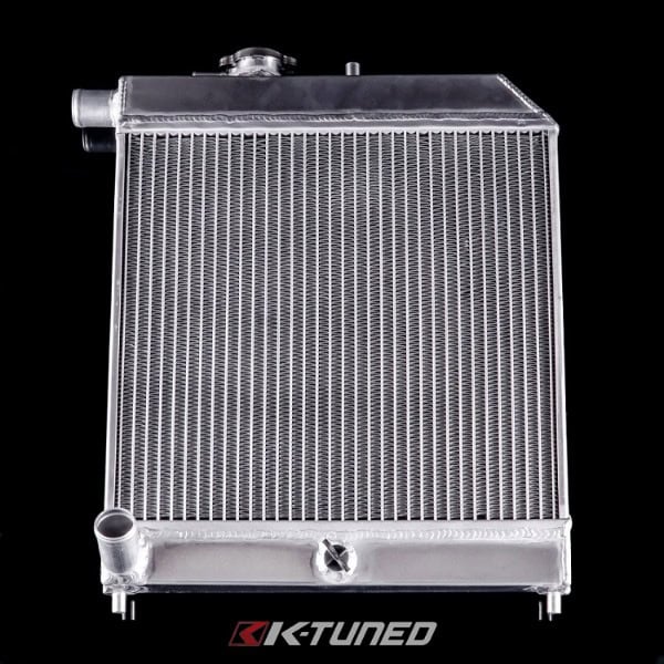 It took a couple years for us to design what we feel is the best K-series swap radiator available. Looking at current & past designs and their flaws, we finally came up with a rad design that meets our high standards. Our K-swap experience showed us that rad installs have usually required relocated rad brackets or modification to the rad itself. Not anymore! The K-Tuned Passenger radiator drops right into the oem passenger side location and requires zero modifications to make it fit. The kit includes our high quality aluminum rad, a set of our custom fitted hoses, SS T-bolt clamps, and a slim design rad fan with mounting ties.