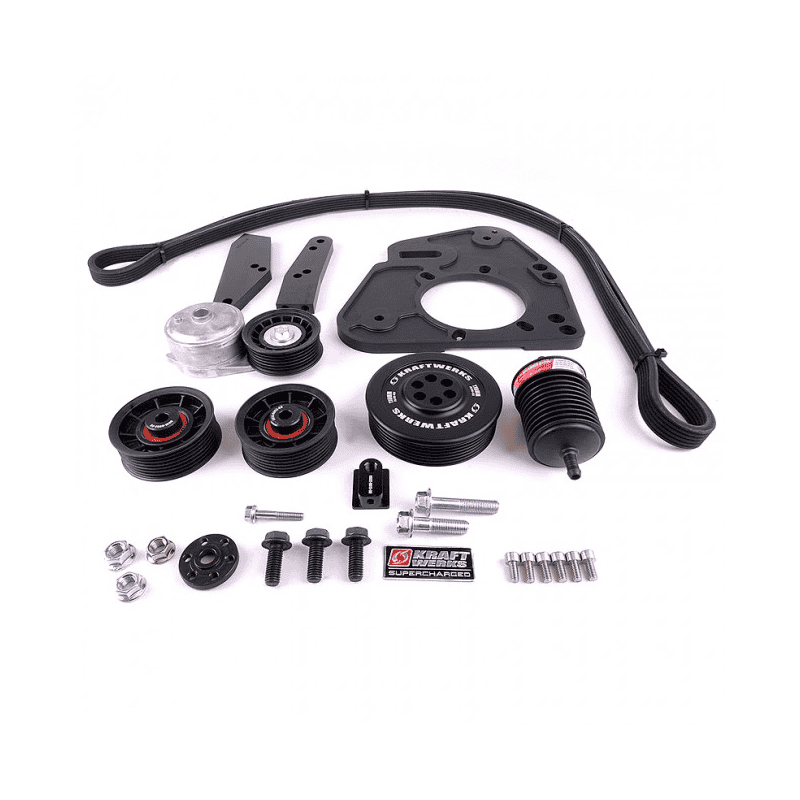 Centered around the highly efficient Rotrex C30-94 Supercharger, the Kraftwerks Supercharger kit produces impressive results throughout the entire power band. While unlike any other forced induction system, the Kraftwerks supercharger system provides a linear power curve, torque on demand, cooler operating temperatures, and total drivability. The Kraftwerks supercharger system provides instant throttle response and a progressive power curve that increases all the way to redline without the typical ‘spiking’ or ‘surging’ associated with turbochargers. This unique, more usable power curve results in reduced cylinder pressures, less strain on engine components, and increased reliability.