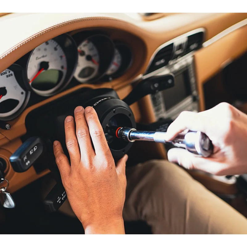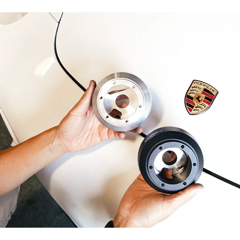 Our iconic Short Hub, and the product that started it all. A steering shaft hub for use with a lockable steering wheel quick-release unit, Patent: US752793B1, featuring the shortest possible mounting surface while still retaining the ability to use your horn and turn signals about 99% of the time. The Anodized 6061 Aluminum construction is miles ahead of our competition, in both style and functional aspects. See for yourself.