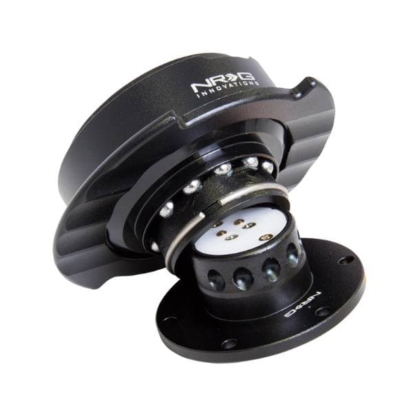 The SRK-250BK Quick Release utilizes all the features of the Second Generation Systems ball-locking quick release system engineered with raised sections to prevent the scratching and stretching of the hub while a self locking feature adds increased safety and functionality, with the added benefit of an upgraded black flared ring. This allows much easier release for the steering wheel by providing added leverage and grip onto the pull ring. Features a black body with a Black ring for added style and look to any vehicle. Perfect for race applications where the use of gloves are required.