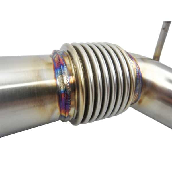 Our design utilizes 16 gauge mandrel bent 3″ tubing, CNC machined flanges and high quality, reinforced flex-section. All components are 304 stainless steel and fully back-purged on site to withstand high exhaust gas temperatures. Pair this with our 3″ Downpipe Upgrade for maximum exhaust flow and performance! All kits will include gaskets, stainless hardware, and components needed for a seamless installation.