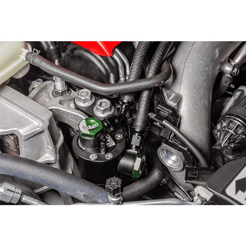 The 20-0425 Catch Can Kit, CCV, Civic Type-R fits under the OEM engine cover with no modifications required.