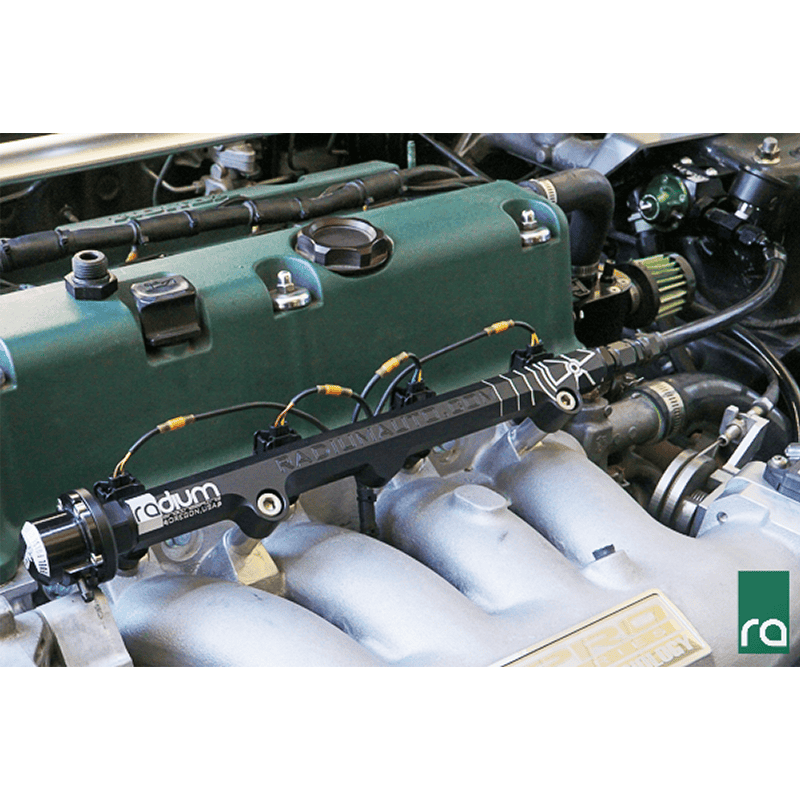 If equipped, the OEM fuel pulse damper can be reused with the Radium 14-0278 adapter fitting. The Honda pulse damper and Radium pulse dampers can be put on any of the fuel rail ports.