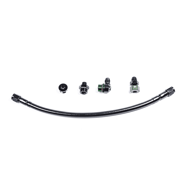 The plumbing kit includes the items shown in the image above. Installs the Radium 20-0391-02 fuel rail on to the 2005-2009 Honda S2000.