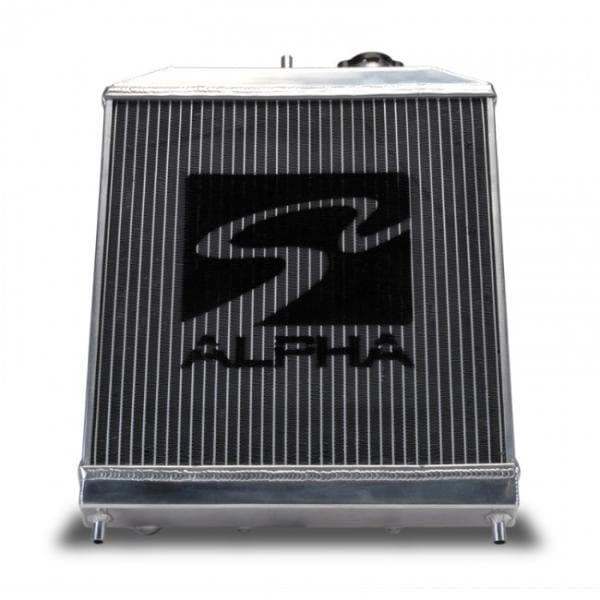 Alpha Series Radiators are manufactured from lightweight and durable aluminum, feature 100-percent brazed cores, and include polished end tanks with Skunk2’s signature Alpha logo embossed along each side. Each Alpha Series Radiator features a dual-core design, high-efficiency fins for maximum cooling capabilities, and includes a genuine Skunk2 Radiator Cap for maximum performance and a premium appearance. Each Alpha Series Radiator also includes provisions for the OEM cooling fan and larger 1.25″ inlet and outlet, which makes it ideal for most engine swaps that utilize larger radiator hoses. See Notes.