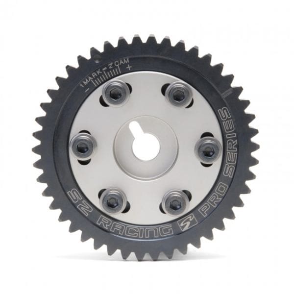 An engine?s camshafts must be set at their proper positions relative to the crankshaft in order to maximize horsepower. The Pro Series Exhaust Cam Gear for Honda’s K20/ K24 engines enables serious tuners to optimize horsepower and torque by being able to further adjust camshaft timing, allowing them to tailor the power curve appropriately. Thanks to laser-etched timing and directional marks, precise camshaft adjustments can be made quickly and easily. Pro Series Cam Gears feature precision-machined, hard-anodized steel teeth to reduce premature wear with a signature, six-bolt design that eliminates gear slipping. Skunk2?s lightweight design and CNC-machined, 7075-T6 billet aluminum construction reduces rotational inertia, resulting in increased engine response and acceleration. Skunk2?s adjustable cam gears have also been proven on race cars in the most extreme conditions for more than a decade.