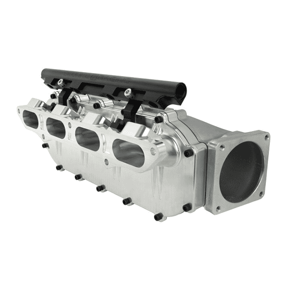 The manifold is designed with provisions to easily add and mount secondary port fuel injectors for high horsepower engine and turbo combinations.  The Skunk2 Ultra runners are CNC machined from solid 6061 billet, while the plenum is cast from aircraft grade A356 aluminum and finished-off with our Signature Skunk2 Ultra-Series nameplate. The modular design of the Skunk2 Ultra Manifolds allows the plenum volume to easily be increased using simple spacers, and the runners to be freely ported for additional flow and volume.  The versatility of this manifold allows enthusiasts and engine builders to tune the manifold combination to best suit their specific needs.