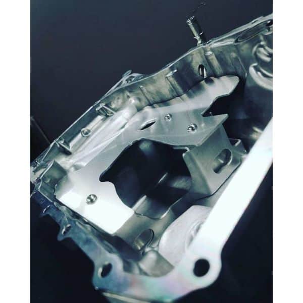 Our baffle setup divides the original sump into 3 separate compartments optimizing the oil control inside the pan.