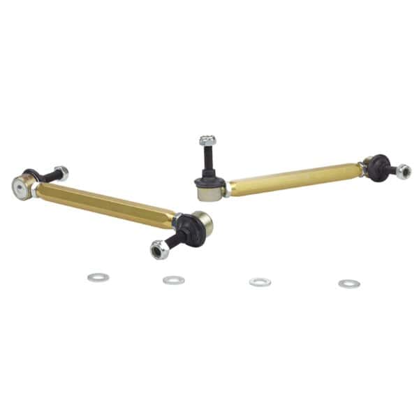 Not many enthusiasts are aware that OE and more importantly aftermarket sway bar effectiveness can be hindered by worn or inadequate mounts, drop links and lateral stoppers. Whiteline adjustable sway bar links are engineered to be up to the task with top spec, light weight componentry combined with a window of adjustability, eliminating sway bar preload on installation but most importantly ensuring the maximum output of the sway bar for improved grip and better handling.