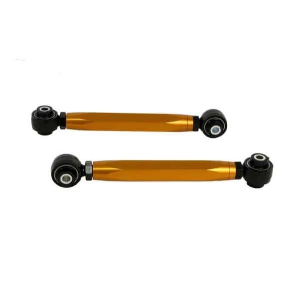 KTA260 is heavy duty adjustable rear lower control arm kit designed to allow for increased range of toe adjustment. Low compliance bushings are used to minimise NVH and maximise longevity. Left-right-hand thread adjustment turn-buckle nut allows for easy on-car adjustment.